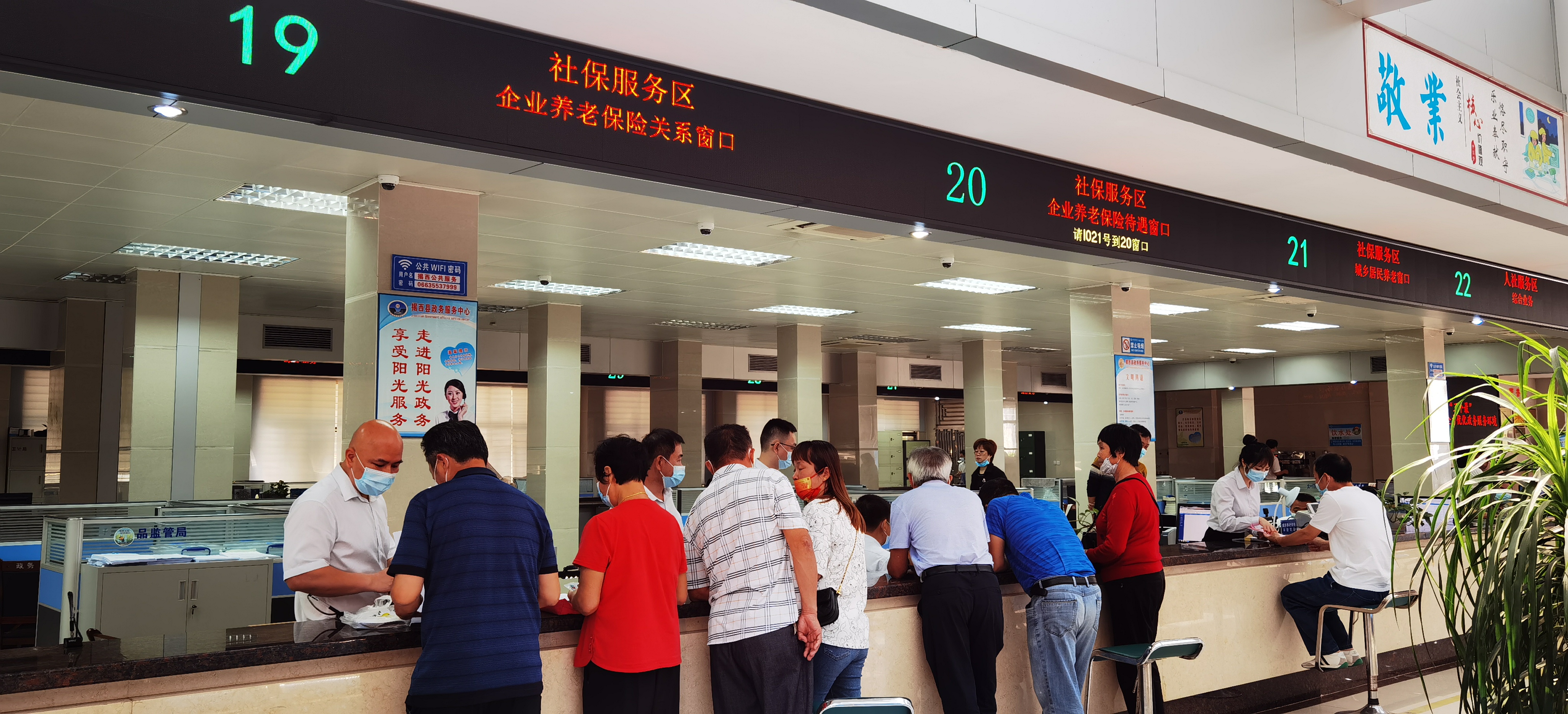 据了解:本次入驻县政务服务大厅,揭西县社保局城乡居民养老保险,企业养老保险关系、企业养老保险待遇业务设置在县政务服务中心19至21号服务窗口,揭西县就业服务中心就业创业证申领、就业登记、失业登记业务设置在县政务服务中心22号服务窗口,服务项目达26项,这次入驻既打破了传统的经办模式,优化了办事流程,又提升了“一窗受理”、“最多跑一次”服务能力,更好地推动了社保、就业服务经办工作再上新台阶。